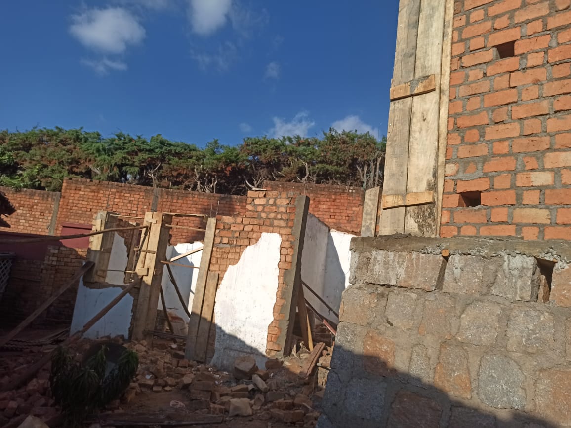 Puis, la semaine du 15 septembre 2025, on a continué par la réhabilitation du local en Centre de santé. Il s’agit d’aménager une petite maison de 2 pièces laissée à l’abandon au sein du site AKANY MANAOVA SOA IADANANA. La grande pièce sera aménagée en salle d’accueil tandis que la petite pièce en salle de soin, puis on installera une douche et une toilette intérieures. Les travaux ont commencé par la démolition de la toiture qui va être rénovée entièrement et selon les normes. Il en sera de même pour les portes et fenêtres.